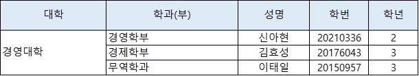 | [2022학년도 1학기] DEAN’S LIST 선정자 안내 | |