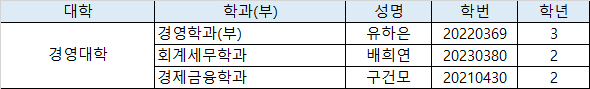 – 단과대학 홈페이지 명단 게시